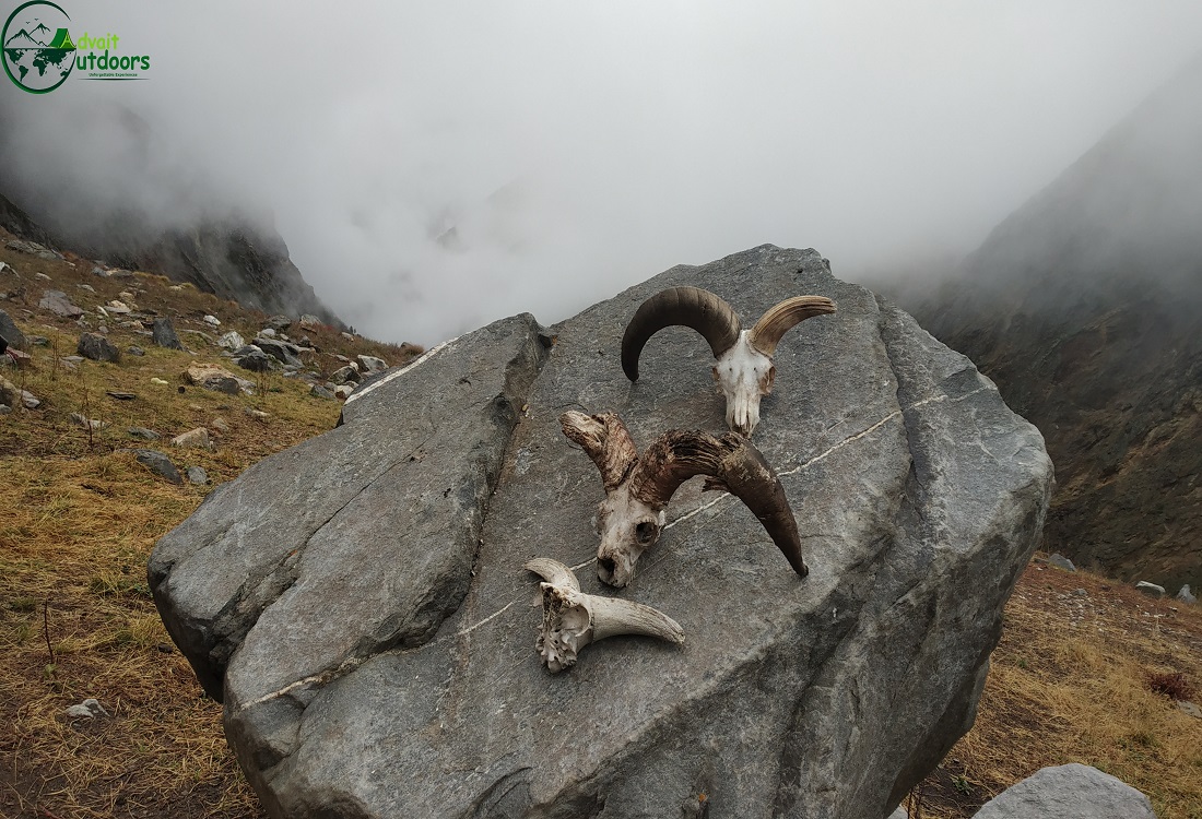 Max. Elevation of the day – Nala camp ( 3750m/12300 ft) Route Detail – After breakfast, we’ll start the trek to our first camp. We’ll see Soorya Kund, Gauri Kund and then after a while, we leave the civilization and the network away. we’ll be walking through the beautiful forest. After 1.5 hours of trek, we came across the wooden bridge on Rudra Ganga. After a little step ascends the route is gradual all along the Rudra Ganga till the campsite. Walk through the forests of pine, cedar, birch trees, and rhododendrons with some beautiful flowers and waterfalls on the way. Reach at the camp by late afternoon. Go for an acclimatization walk. You’ll love the beauty of the campsite. Overnight stay in tents. Highlight of the day – The route and the campsite Accommodation – Tents Remark – Try to start early and reach the campsite on time as the weather becomes bad in the afternoon.